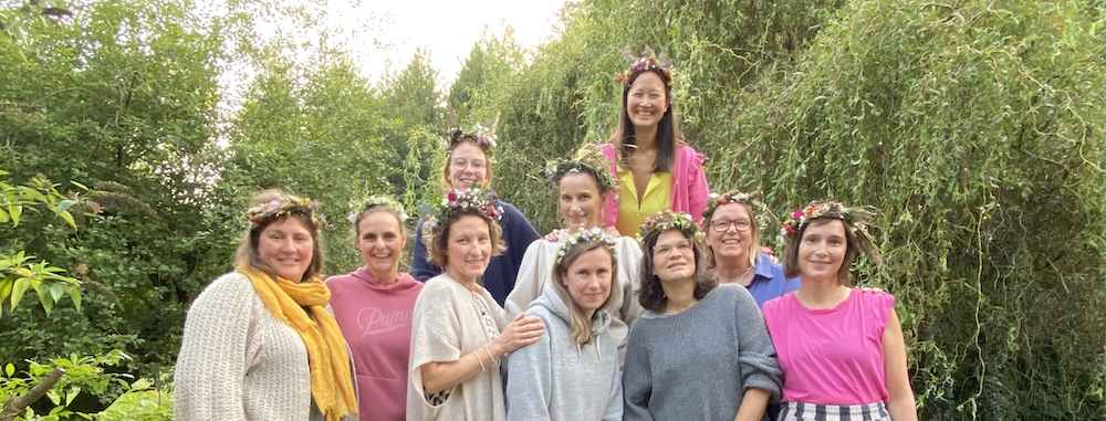 Am Samstagnachmittag kommen wir in einem kreativen Ritual zusammen: Wir binden Blumenkränze – eine alte Geste aus Frauengemeinschaften, in der sich Natur, Jahreszeit und Lebenskraft verbinden. Es ist ein spielerischer, leichter Moment, der dich auch an etwas sehr Ursprüngliches erinnert: an das junge, freie, unbeschwerte Mädchen in dir, das sich schmückt, lacht und sich mit dem Leben verbindet. Am Abend lassen wir am Feuer den Tag mit einem Ritual ausklingen.